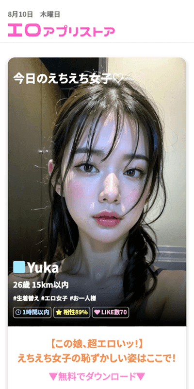 タイトル えちえち女子のバズアプリ テンプレート番号 tp_174 掲載ジャンル ビデオ通話 サンプルURL https://media.ad-lps.net/sample/tp_174 タグ #AI女子 #スライダー #ポップ #激しめ -
